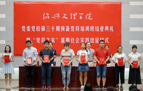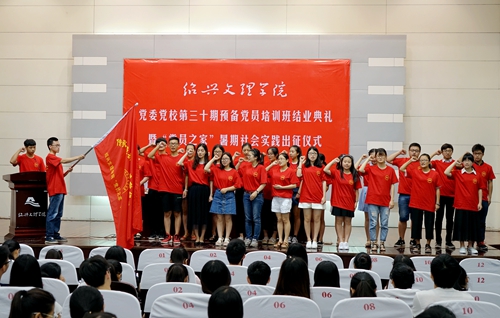 6月23日晚上,党委党校第三十期预备党员培训班结业典礼暨“党员之家”暑期社会实践队出征仪式在铁城科教馆报告厅举行。校党委副书记、党委党校校长沈赤,校党委委员、组织部部长、党委党校常务副校长宣绍龙,校党委委员、宣传部部长、党委党校副校长胡保卫,党委党校校务委员会委员,培训班学员和暑期社会实践队队员参加了会议。会议由宣绍龙主持。