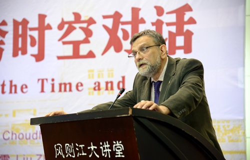 叶飞帆代表学校对各位嘉宾表示热烈欢迎。他表示,我校承办“鲁迅与泰戈尔:跨时空对话”的中印文化交流活动,是继前年“鲁迅与雨果”和去年“鲁迅与托尔斯泰”的“大师对话”后,迎来的第三场“鲁迅与世界文豪:跨时空对话”活动。1924年,泰戈尔先生访问了中国,在当时掀起了一阵“泰戈尔热”。鲁迅先生也参加了泰戈尔的64岁生日庆祝大会。此后,鲁迅便多次谈论起泰戈尔先生。叶飞帆认为,此次“大师对话”不仅让我们更进一步认识鲁迅与泰戈尔心灵的相通性,而且也进一步认识到鲁迅与泰戈尔文化遗产的当代价值。“大师对话”的开展不仅将两位文豪的文化交流精神延续到今天,也将更进一步深化中印两国的文化交流。