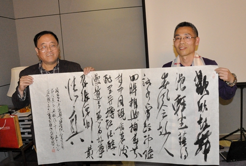 校友总会会长宋培基教授代表学校讲话。会后,邓永诚校友为广大与会代表作中医养生讲座,张志霖校友进行现场书法创作赠送母校及校友代表,总会顾问许学刚研究员为广东校友会即兴创作“七律”诗一首,沈晓娟校友为校友会成立创作散文一篇并与石国洪会长倾情朗诵,耿涛校友也献笛乐一曲。
