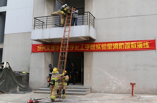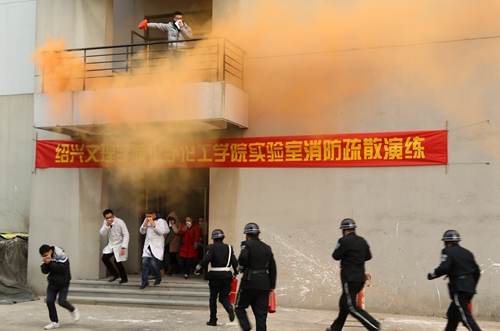 实验室突发火灾怎么办?火灾发生应该如何逃生、如何求救?化学品发生事故如何处置?12月16日下午,化学化工学院在南山校区浙江省精细化学品传统工艺替代技术研究重点实验室举行了实验室应急疏散演练。越城区消防大队、校保卫处、后勤管理处、化学化工学院等联合参与了此次演练。校党委副书记唐和祥,越城区消防大队副大队长焦志高,化学化工学院、后勤管理处、保卫处、教务处相关负责人观摩了此次演练。