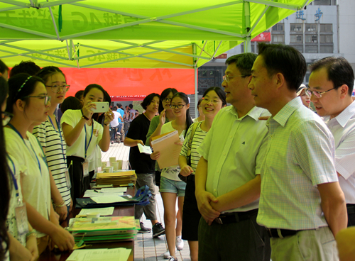 当日上午,校党委书记周达军、党委副书记唐和祥率队走访阳明书院、仲申书院、建功书院,感受书院文化育人氛围、看望新生。对仲申书院设置的校友文化走廊,周书记点头称赞,“在这些知名校友的事迹影响作用下,让学生们汲取奋进能量,不懈努力”。在阳明书院新设的“我和爸爸妈妈合影留念”拍照快捷取片服务点,周书记还与新生一起亲切合照,新生和家长觉得学校很有爱:“报到第一天就能看到学校领导来看我们,还合了影,太高兴了。”