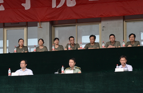 唐和祥副书记作军训动员报告。他首先代表学校党委、行政向参加军训学员表示亲切问候,向前来我校承担军训任务的浙江省陆军预备役师全体承训教官致以热烈的欢迎和衷心的感谢。他指出,今年是中国人民抗日战争暨世界反法西斯战争胜利70周年,伴随强军强国热潮,学员们应该更好地履行军训义务,深入理解中华民族伟大复兴中国梦的精神实质,积极践行社会主义核心价值观。同时,学员们要明确“为什么要军训”“训什么、学什么”、“要注意什么”四个重要内容,切实增强国防观念,认真学习军队优良传统和军事理论知识。他要求学员在军训中要一切听从指挥,明确组织纪律,学习领悟习近平总书记提出的当代军人“四有”精神——有灵魂、有本事、有血性、有品德,不怕苦,不怕累,以饱满的精神状态投入训练。