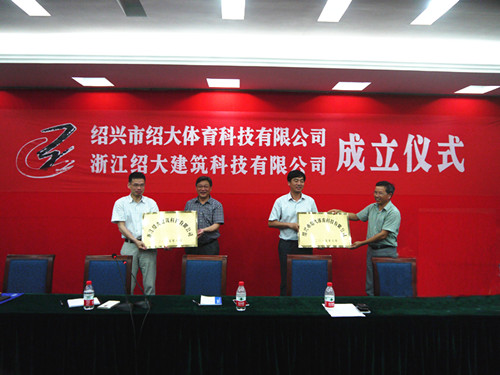 6月16日下午,我校首批学科性公司——绍兴市绍大体育科技有限公司、浙江绍大建筑科技有限公司在铁城科教馆举行成立仪式。校党委书记周达军、副校长杨大明、校党委委员柳国庆、各二级学院主要负责人,资产经营公司董事会、监事会成员和相关管理人员出席了仪式。成立仪式由资产经营公司总经理谢军波主持。
