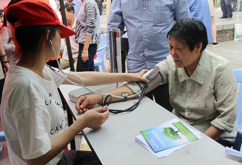 活动于下午1点正式开始。在音乐声中,每一支志愿服务队都各显特色。医学院、医研社和爱之翼救护社的志愿者们替市民现场量血压,教导心肺复苏的急救措施,吸引了众多路人的驻足观看和参与。机械与电气工程学院的志愿者们义务维修自行车、维修电脑程序等,充分发挥了所学所长,锻炼了自身能力,博得了大家的好评。还有纺织服装学院的衣服缝补,生命科学学院现场宣传水资源损耗与保护、大气污染及防护等科普知识。