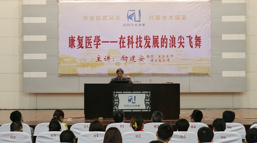 聘任仪式后,励建安教授做客风则江大讲堂,作了题为《康复医学——在科技发展的浪尖飞舞》的讲座。励教授展示了当今国际上最令人瞩目的康复医学新设备、新技术,包括运动反馈和人机对话类运动训练器材、电子化的辅助器具和人性化的材料革命,高科技催生康复临床医学和康复工程的迅猛进步。励教授通过大量国内外典型案例、相关视频和动画,将理论和实际问题相结合,深入浅出地带领听众了解了康复医学的发展情况和应用前景。讲座最后,励教授与听众展开了热烈交流。讲座在热烈的掌声中落下帷幕。