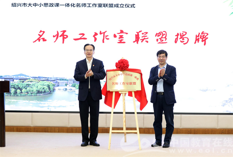 会上举行了“绍兴市大中小学思政课一体化名师工作室联盟”揭牌仪式,启动“绍兴市大中小学思政课一体化建设”网站建设。