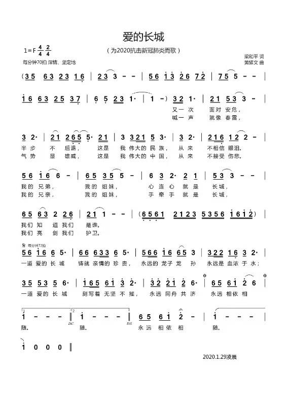 于是,黄耀文决心发挥自己的专长为武汉,为中国加油,为所有在一线冒死奋战的工作者们讴歌!连夜一气呵成创作了歌曲《爱的长城》。在这一时期录制歌曲并不容易,他多方联系录音棚,终于在好友们的支持下完成录制。给全国的医务工作者送上一份精神食粮,激励广大干部群众众志成城,凝心聚力为打赢疫情防控阻击战。