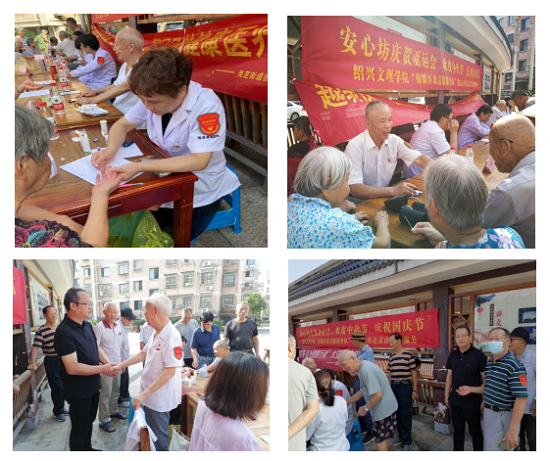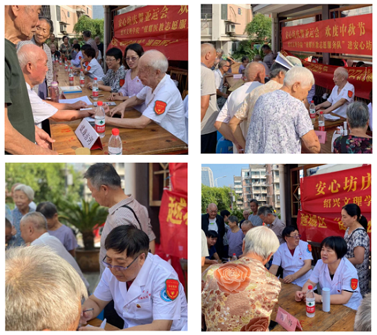 9月27日上午,在中秋与国庆佳节即将到来之际,学校“银耀医教志愿服务队”10名党员志愿者在越城区灵芝街道社区卫生服务中心协助下,为近80位居民送上了义诊咨询与健康宣教等服务。